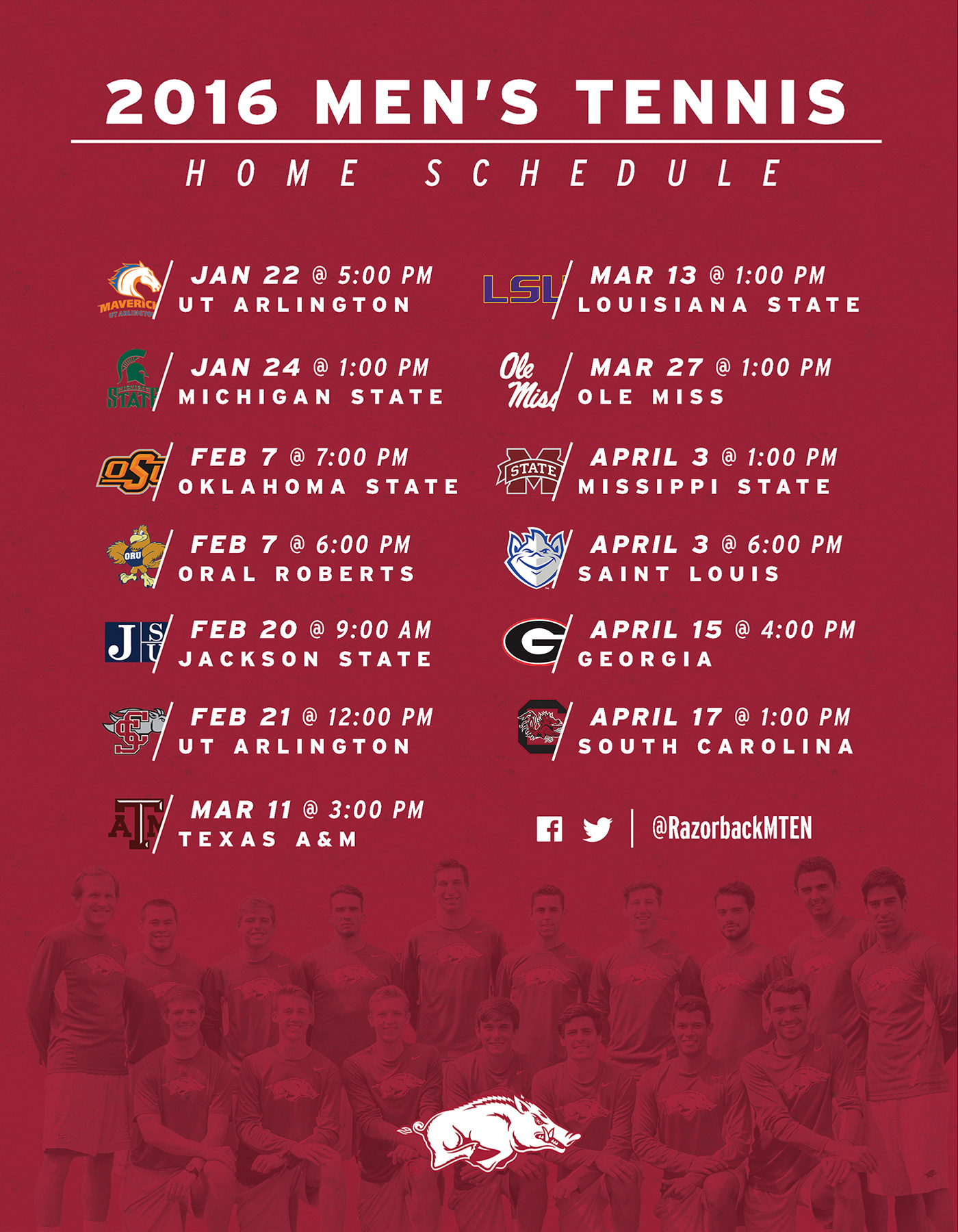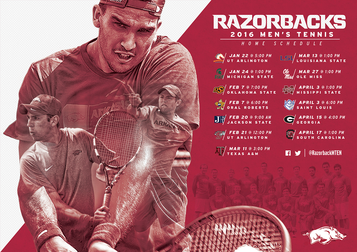 Poster made for University of Arkansas Men's Tennis Program. This wasn't the final design, but I preferred this one.